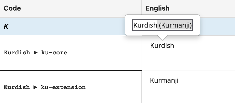 - One of the variants does not have a qualifier (eg, Kurdish, Sorani Kurdish)